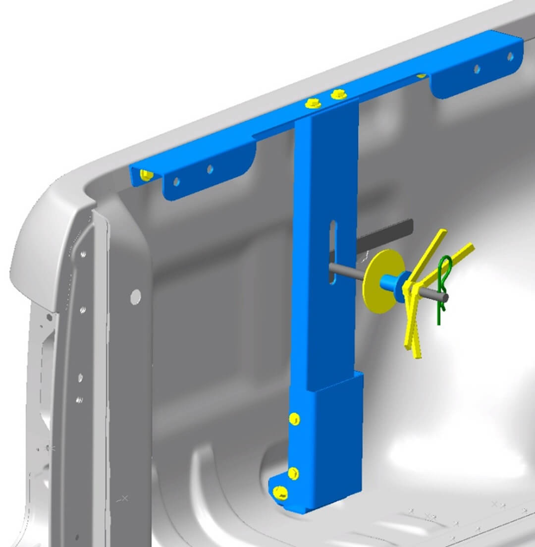 Soporte que permite sujetar la rueda de auxilio en la caja de carga de su vehículo